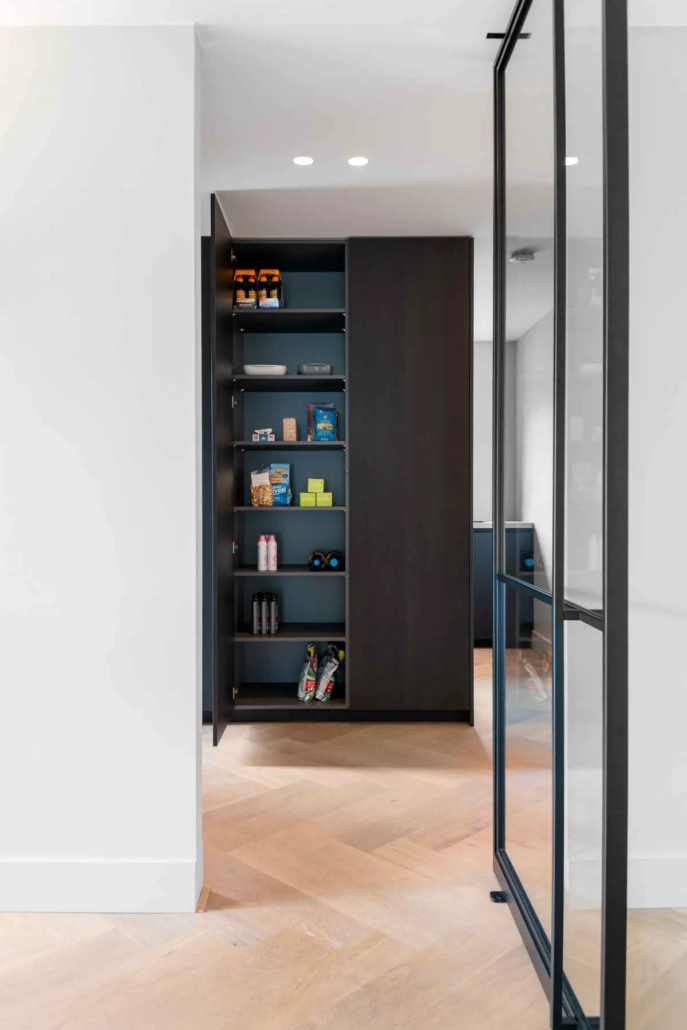 Een bijzonder element in de keuken is de wijnbar, die eveneens door HV Keukens werd gemaakt. “We krijgen daar zó vaak complimenten over”. De bar is stijlvol geïntegreerd in het ontwerp en vormt een natuurlijke overgang tussen de keuken en de woonkamer.